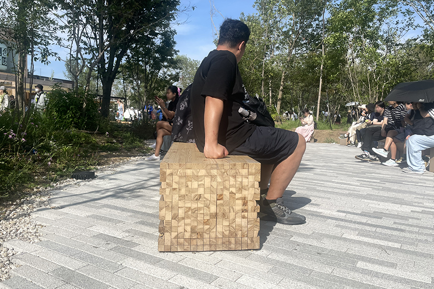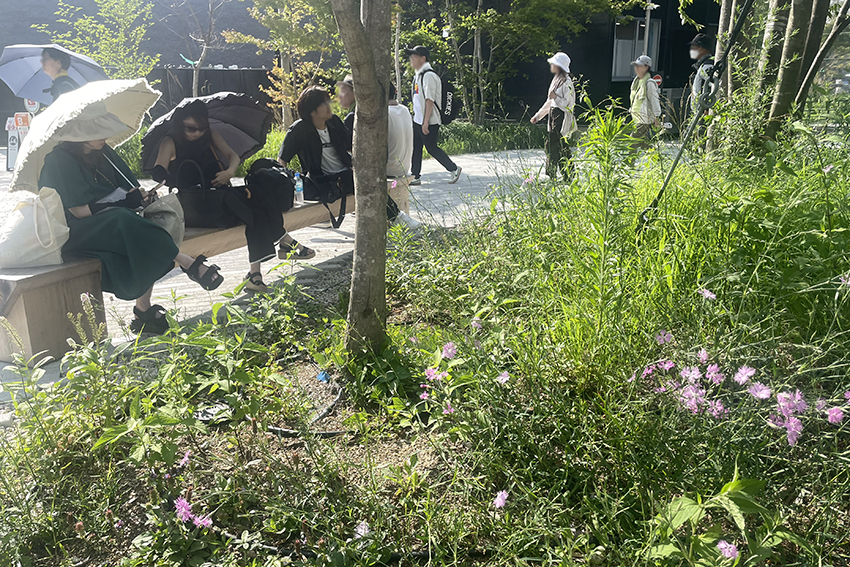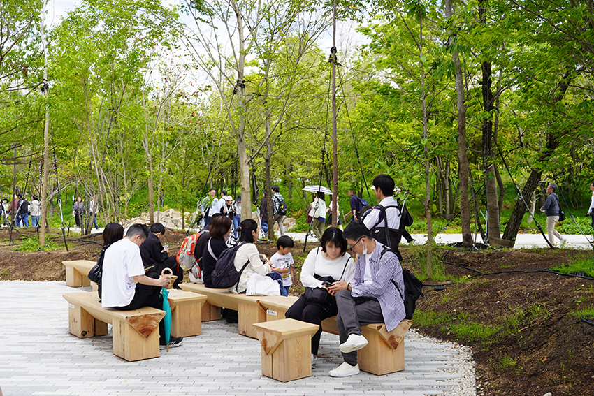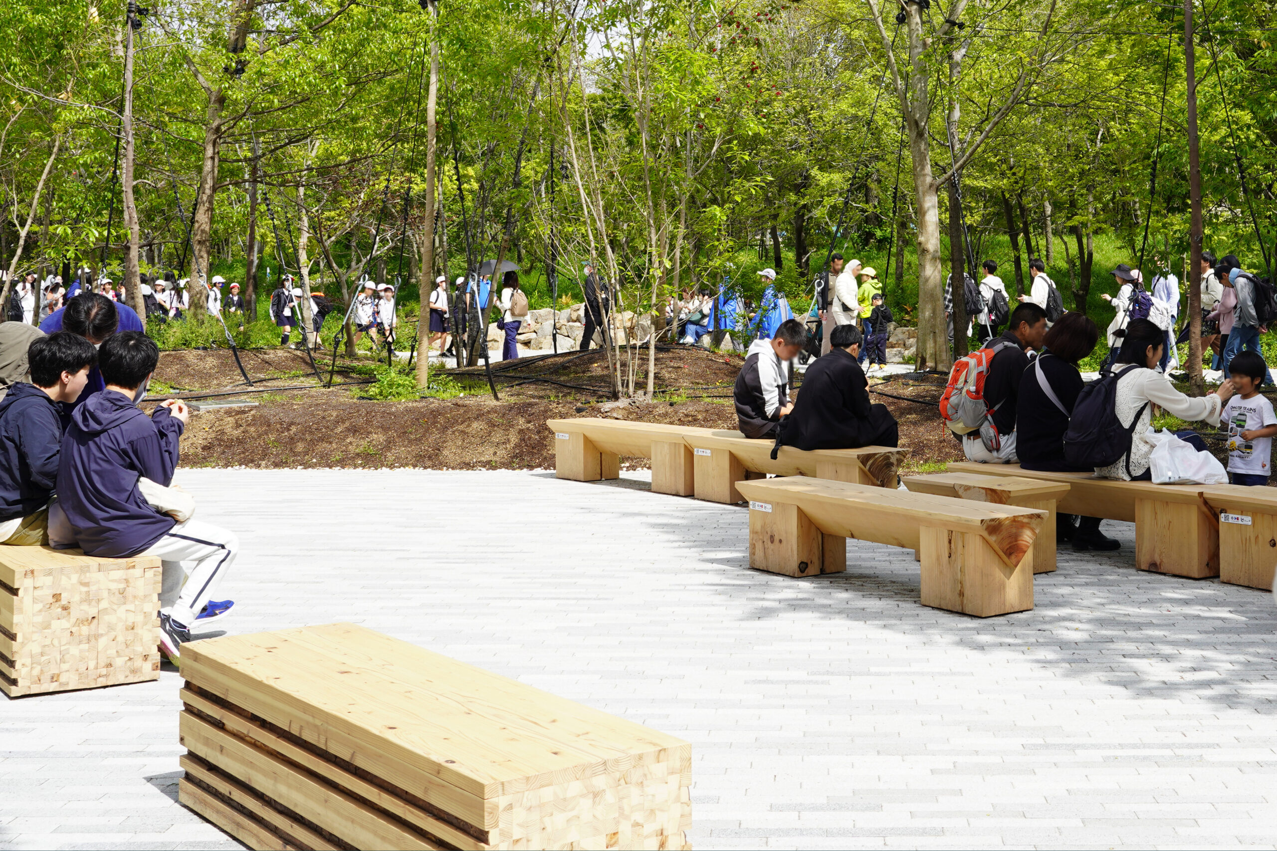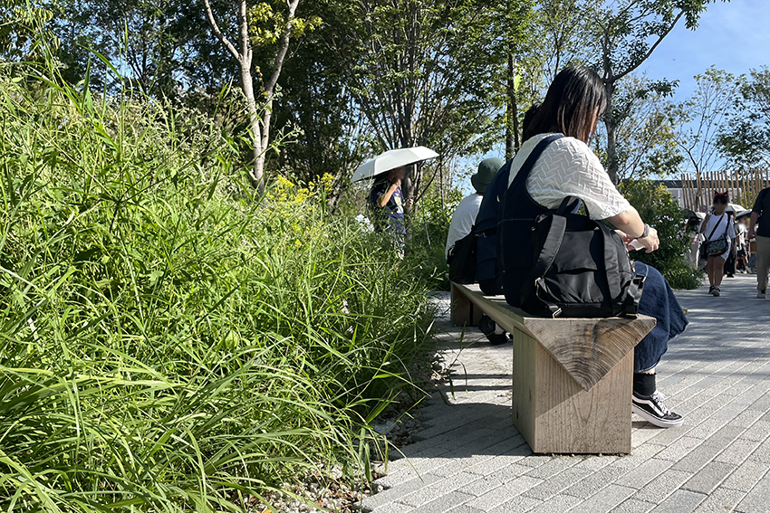3種類のベンチが緑道のそばに設置されました。左が「C/D Bench」、右が「TREE」。 一本の樹がそのまま横たわったように並ぶ「FILLET」。 ベンチに貼られた二次元コードから、プロジェクトのいろんな「想い」をWEBで読むことができます。 設置から5ヶ月経った9月。時間の流れを感じる座面。 腰掛けて休憩したり、お弁当を食たり、通り抜けたり、そばで子どもが遊んだり。時間によっては木漏れ日が落ちてきていました。 「TREE」の1人がけの小さいものは、机にしたり、向かい合って座ったり、使う人が自由に移動したのか、位置が日々変化していました。 「想うベンチ」について詳しくはこちら>>