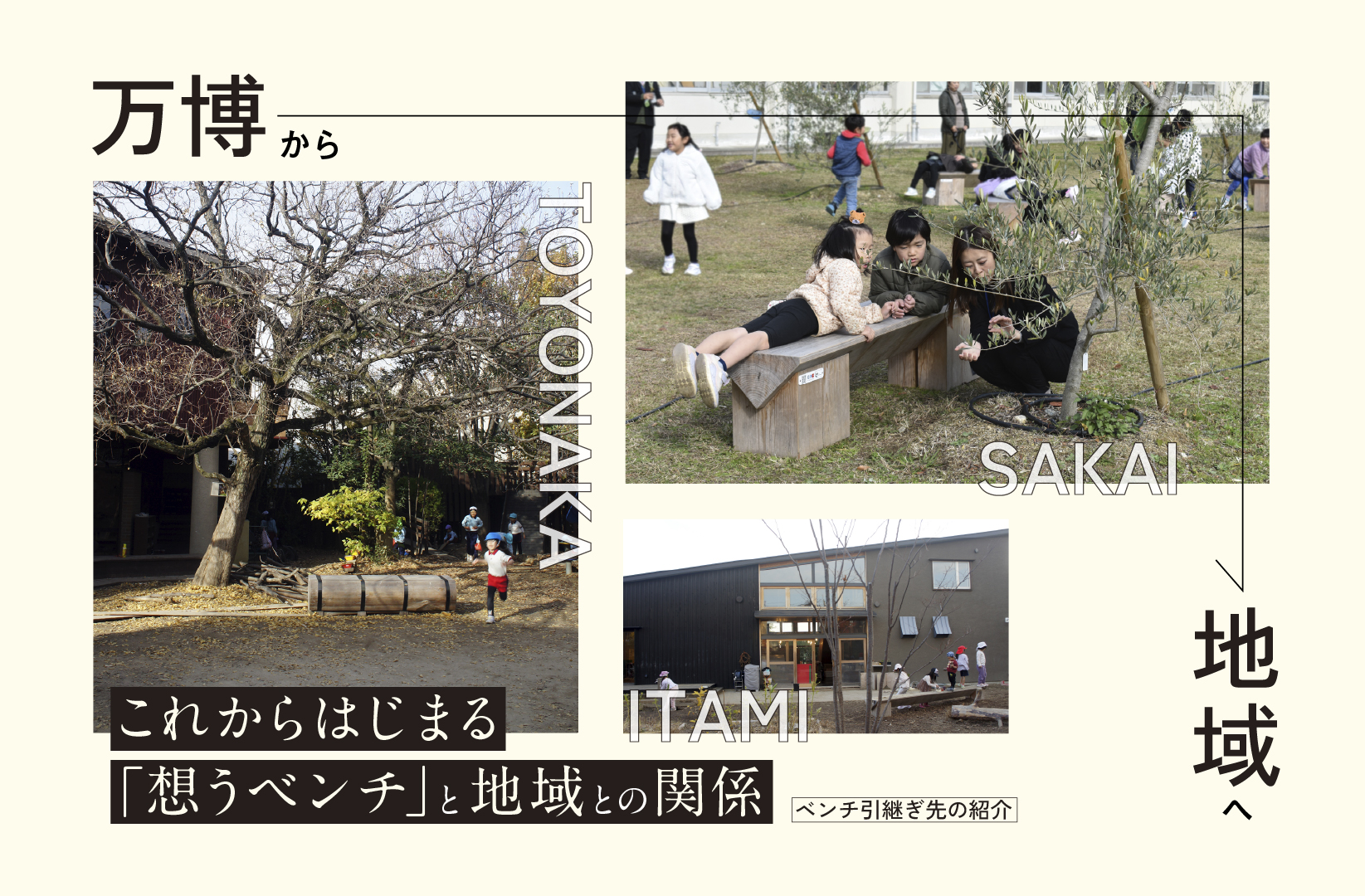 ベンチが設置された当時、こんなエピソードがあったと先生が教えてくれました。「園児に万博が大好きだった子がいて。万博が閉幕したのが悲しかったみたいで落ち込んでた時期がありました。そんな時、このベンチが来たんです。『万博、終わらんかったんやな』ってつぶやいて、すごく喜んでました」。卒園アルバムは自分のお気に入りの場所で撮影するそうですが、その彼は「想うベンチ」を選んでくれたそう。